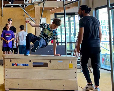 Bald ist es schon wieder so weit, die Ferien kommen! Und damit auch keine Langeweile aufkommt, gibt es bei uns Parkour Feriencamps für Kids und Teens ab 8 Jahren! Mit Mittagspause mit leckerem Essen (lecker Bio, auf Wunsch gerne vegetarisch). In fünf Tagen ist genug Zeit, um die Basics zu meistern, eigene Ideen auszuprobieren und seinen ganz eigenen Stil zu finden!